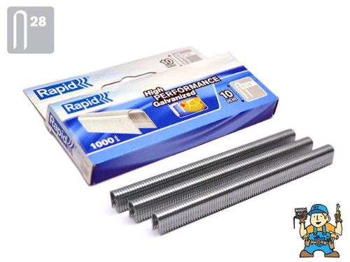 PRODUCT DESCRIPTIONS:Rapid 28 SERIES 10MM Sharp pointed Cable Staples for fixing 6mm diameter cable 1000 per box.Features10 mm leg length For R28 Galvanized wire High performance strong wire Diverging points, DP, makes leg points go in opposite directions, for extra strong bonding Applications: securing low voltage cables, 4.5mm diameter max. Boxed 1000 pcs.