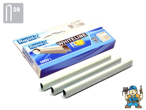 PRODUCT DESCRIPTIONS:Rapid 28 SERIES 10MM Sharp pointed WHITELINE Cable Staples for fixing 4.5mm diameter cable 1000 per box. Features White Coated Staples Invisible when used with white cable on white material. 10 mm leg length For R28 Galvanized wire High performance strong wire Diverging points, DP, makes leg points go in opposite directions, for extra strong bonding Applications: securing low voltage cables, 4.5mm diameter max. Box 1000 pcs.